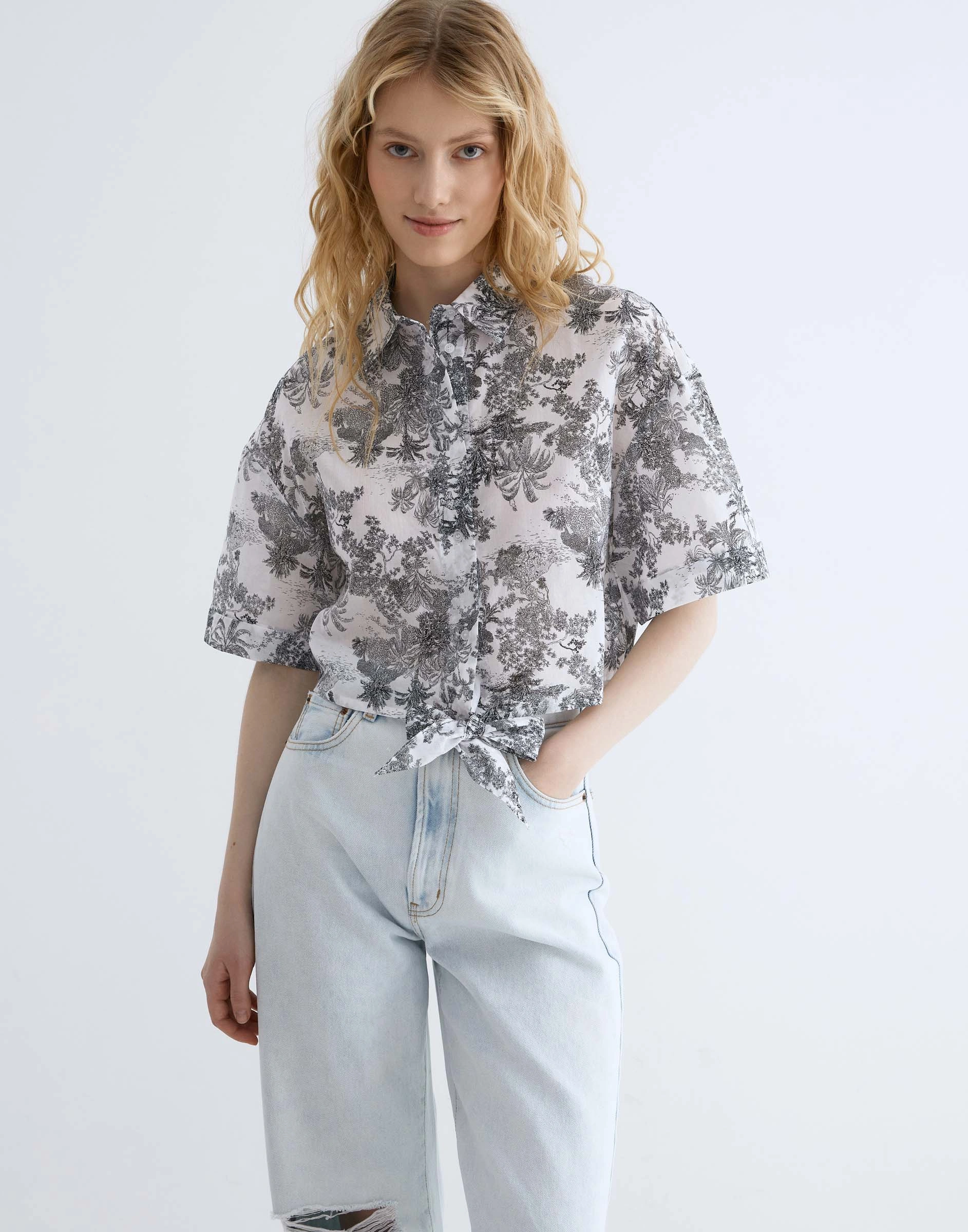 Укороченная рубашка с принтом и узлом Gwt004925-1