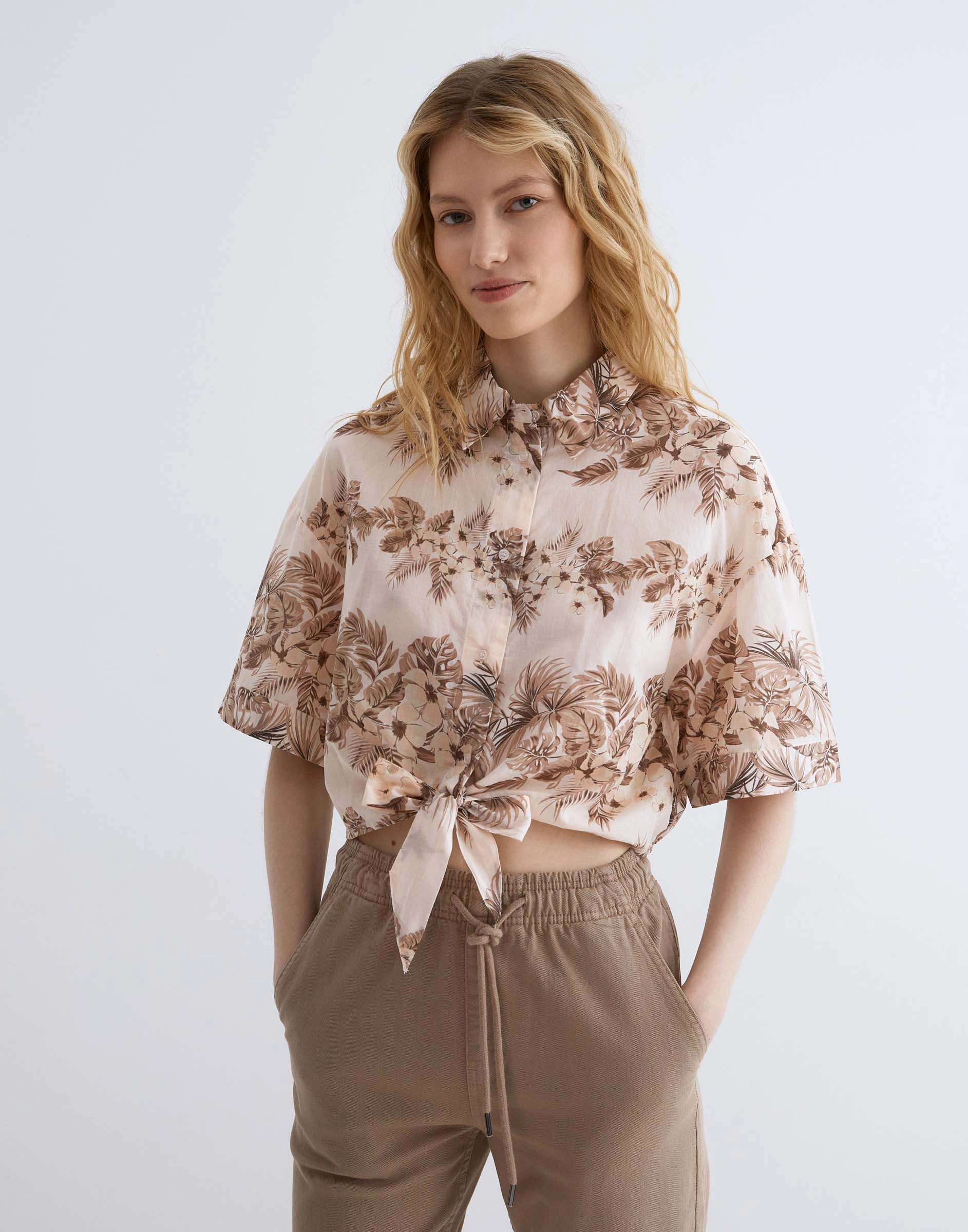 Укороченная рубашка с принтом и узлом Gwt004925-2
