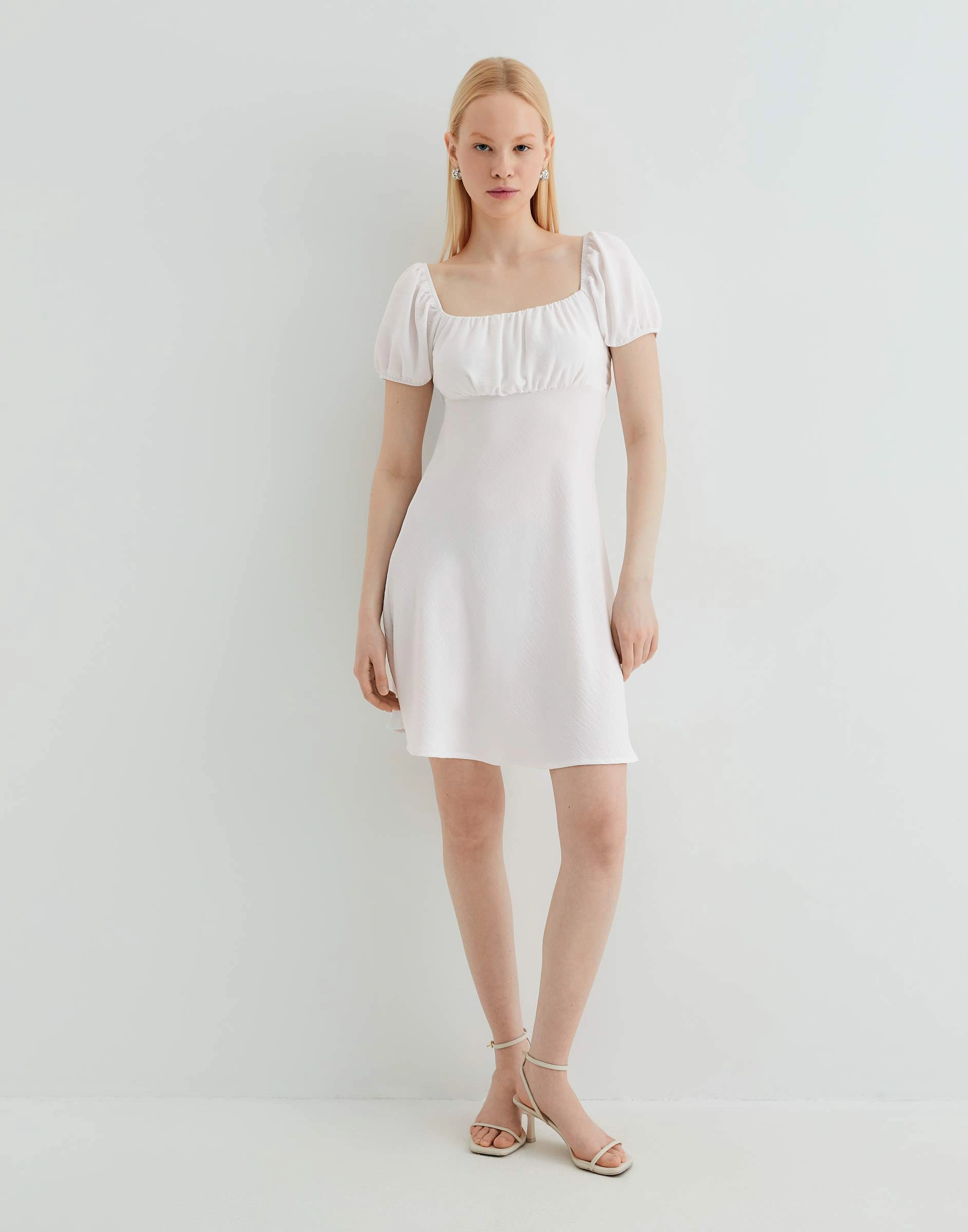 Белое платье мини с объёмными рукавами и бантом Gdr029987-2