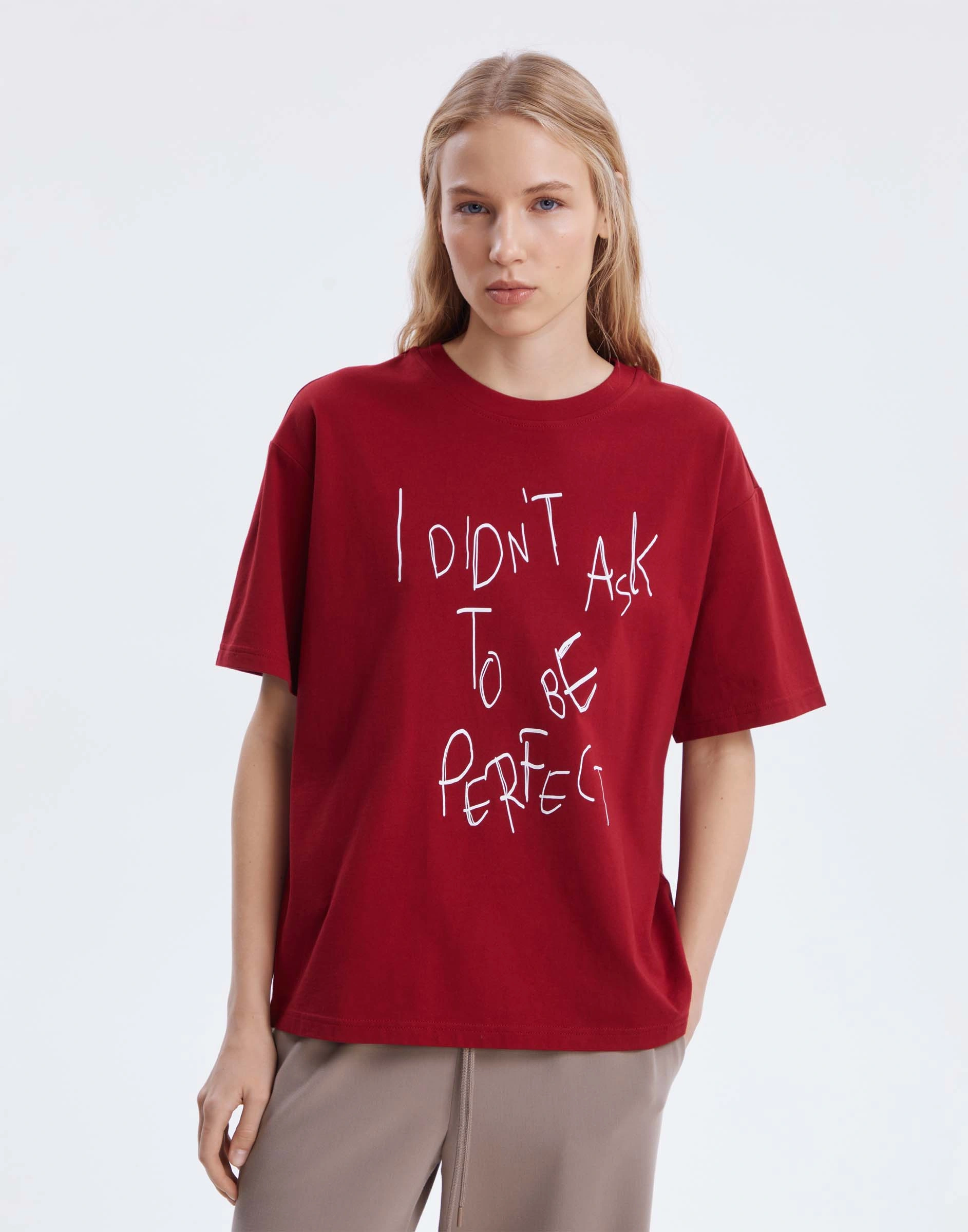 Красная удлинённая футболка oversize с принтом Gkt026493-2