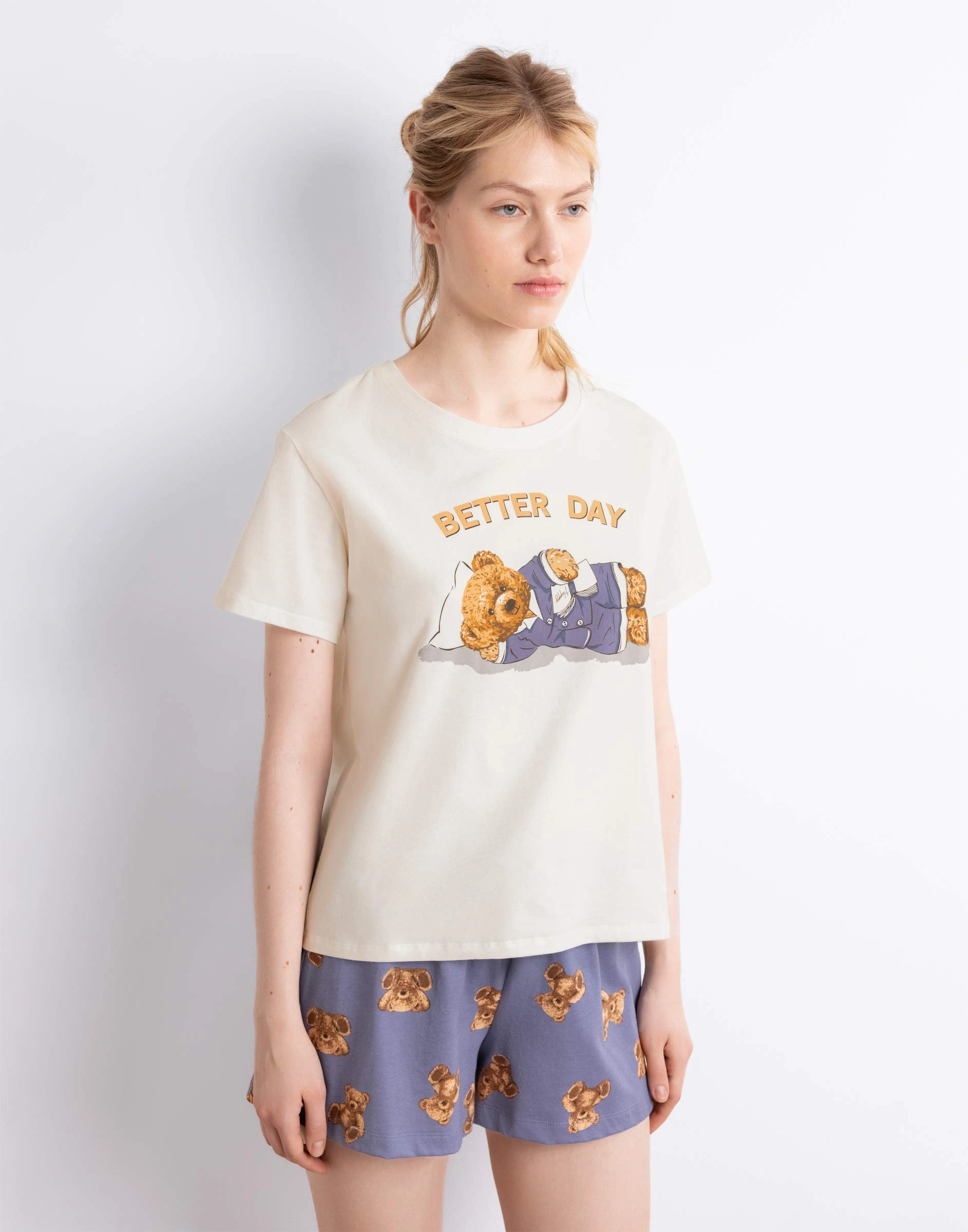 Молочная пижамная футболка с мишкой Gsl002599-1