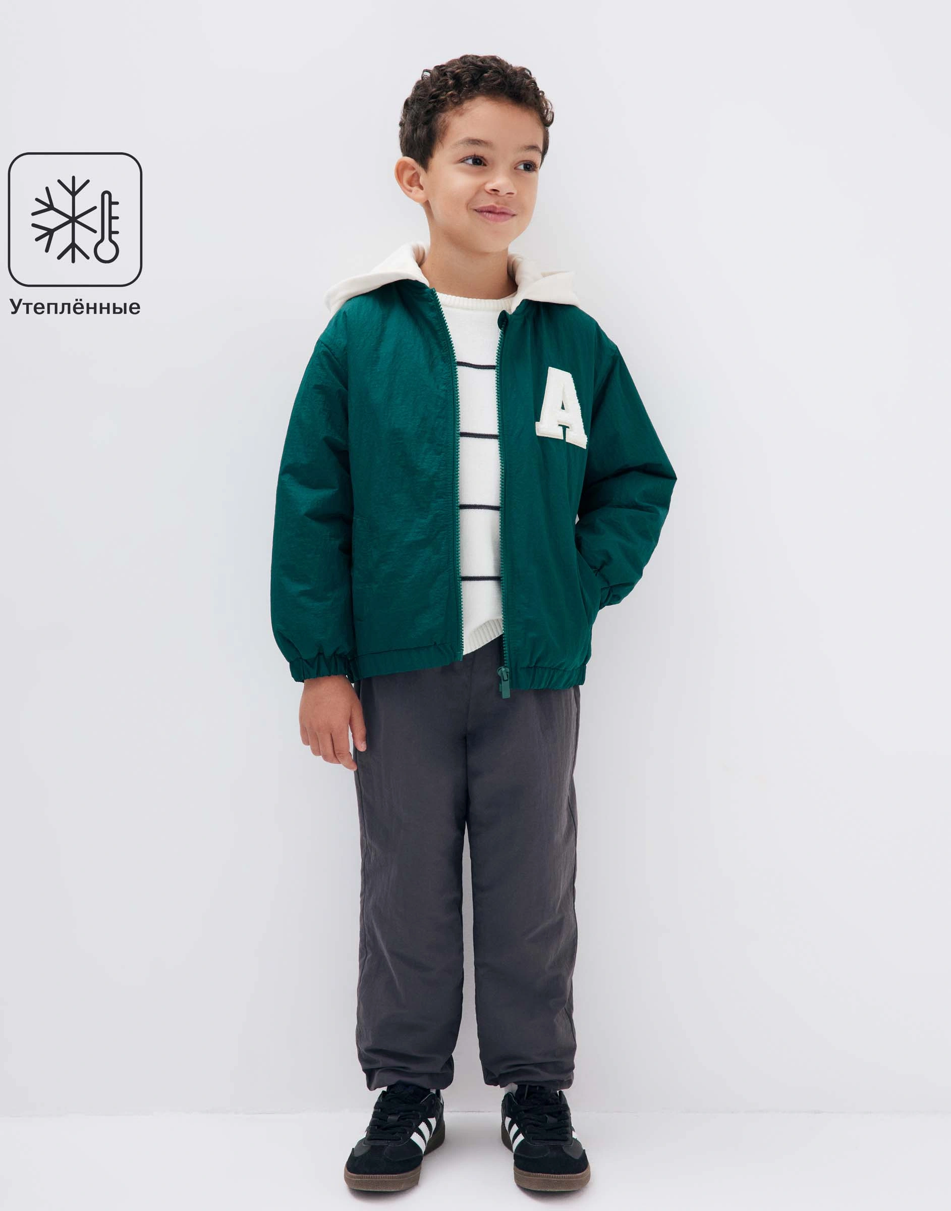 Тёмно-серые утеплённые брюки для мальчика Bow002244-1