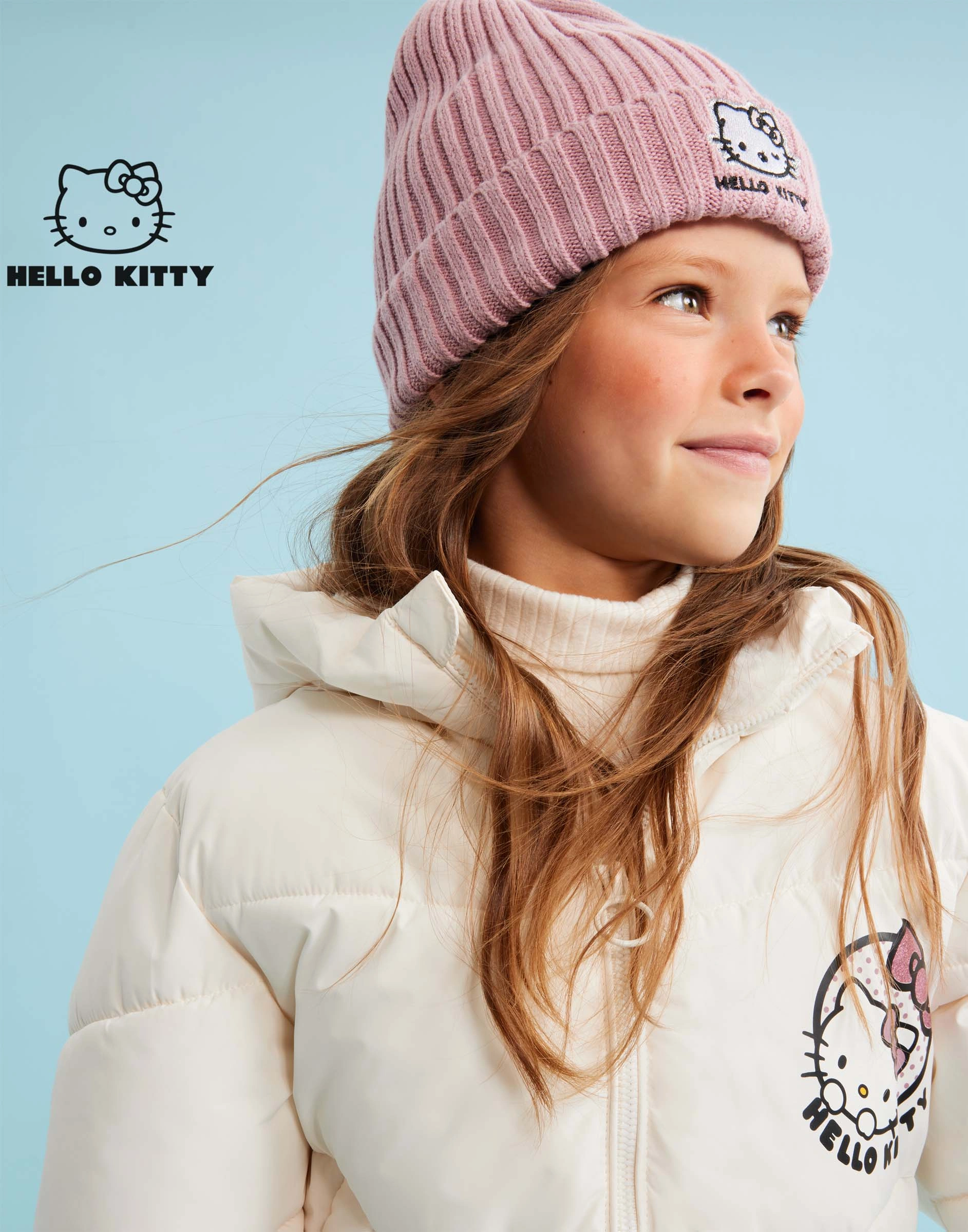 Розовая шапка-бини в рубчик с вышивкой Hello Kitty для девочки Gas016934-1