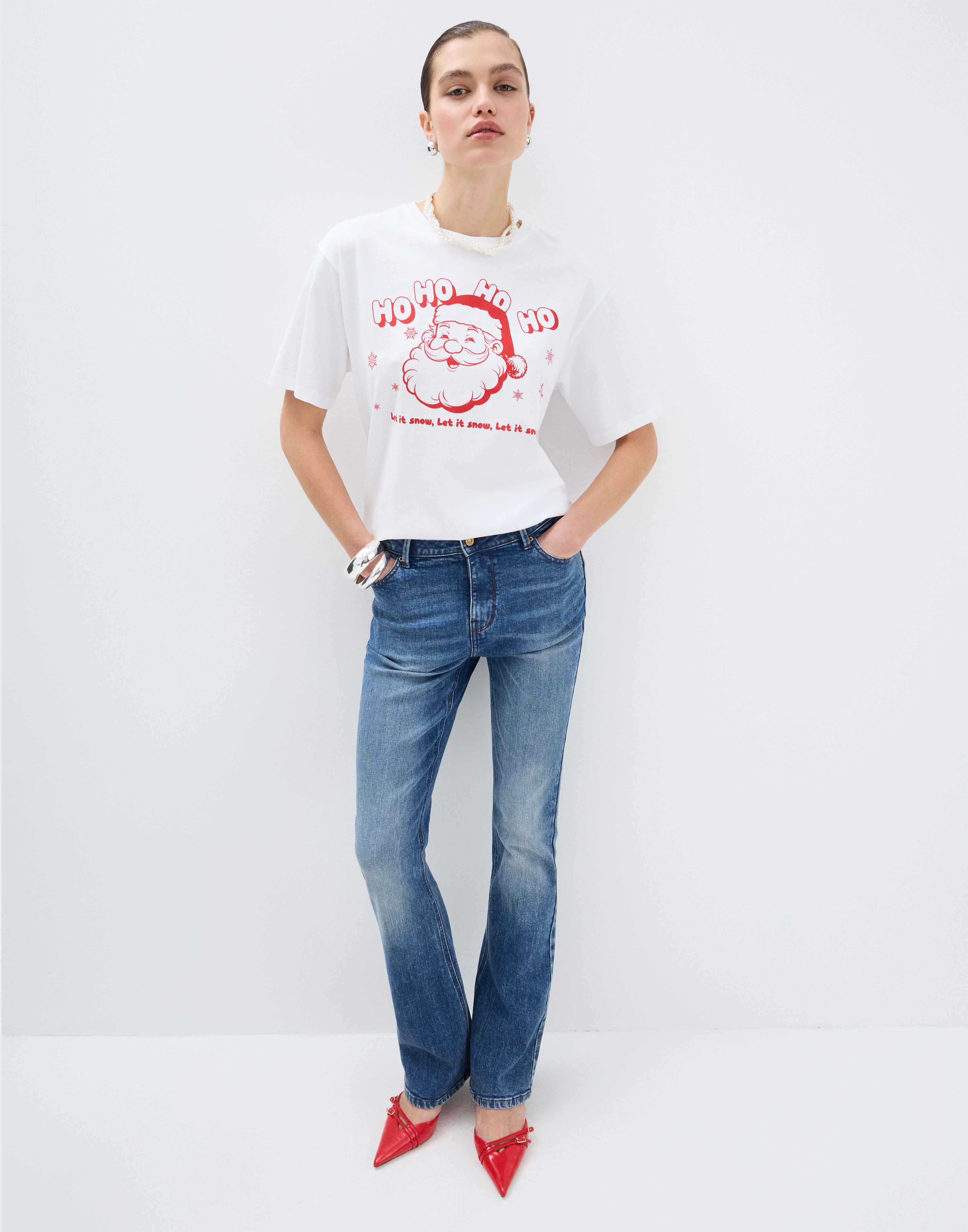 Белая футболка oversize с новогодним принтом Gkt029478-1