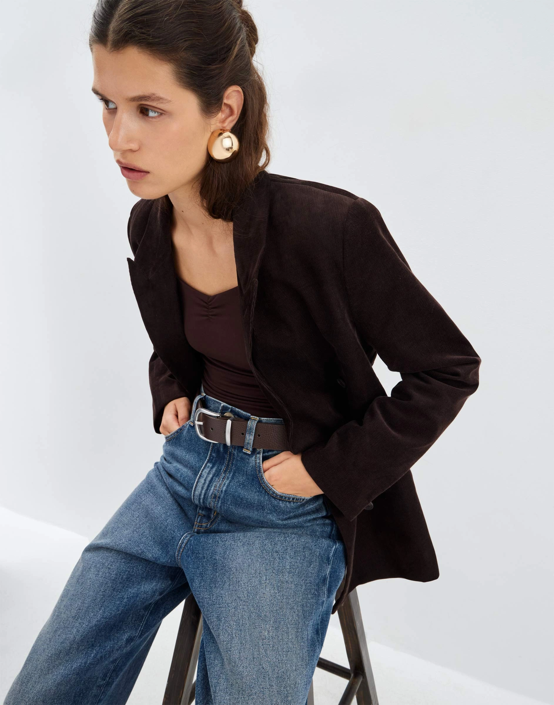Тёмно-коричневый двубортный жакет oversize Gjc006984-1