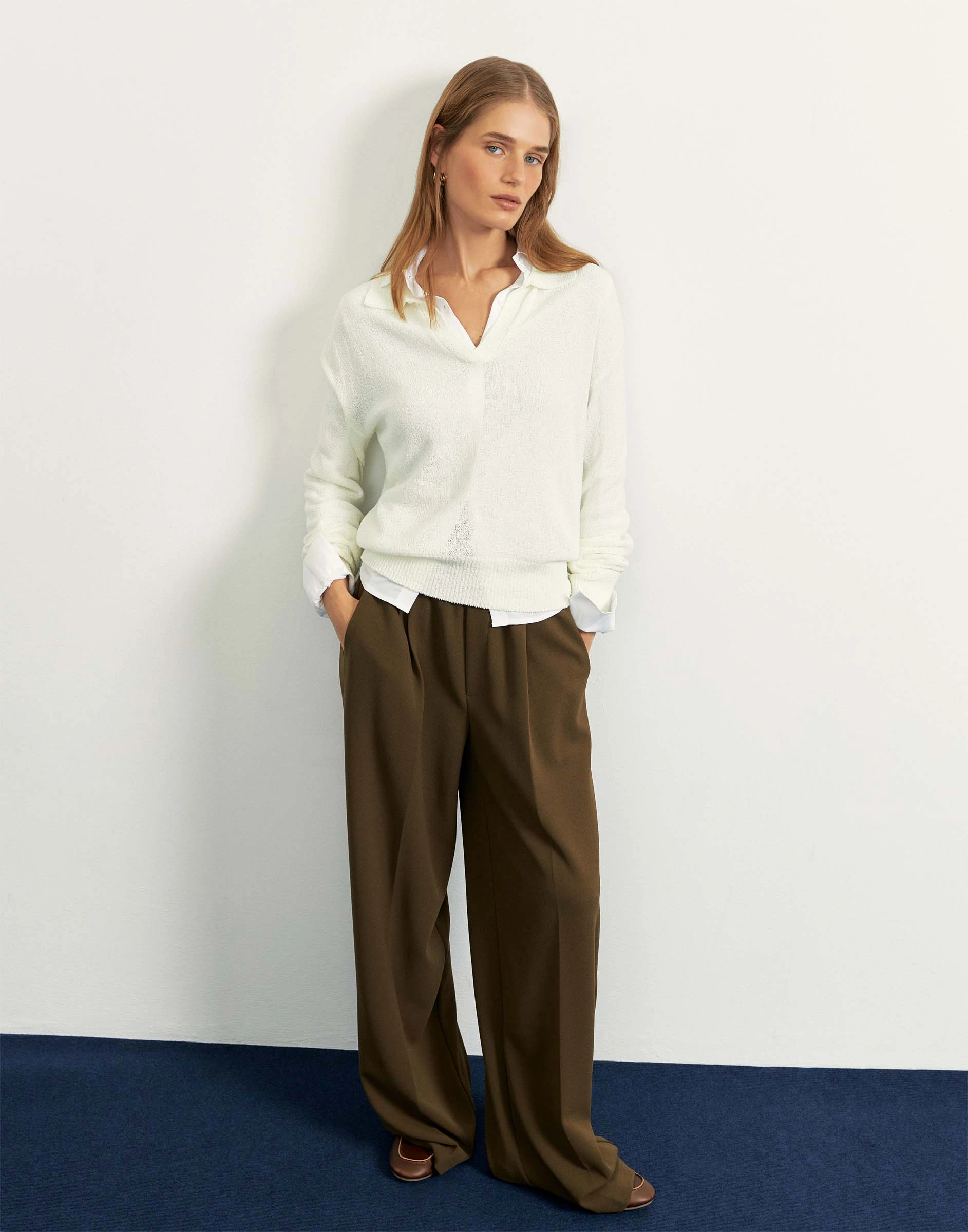 Хаки брюки Wide leg с защипами из крепа Gpt010792-2