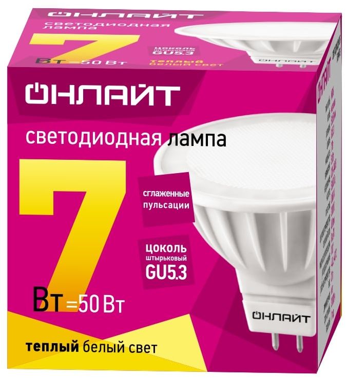 Лампа светодиодная mr16 Gu5.3, 7 Вт 3000 К тёплый свет
