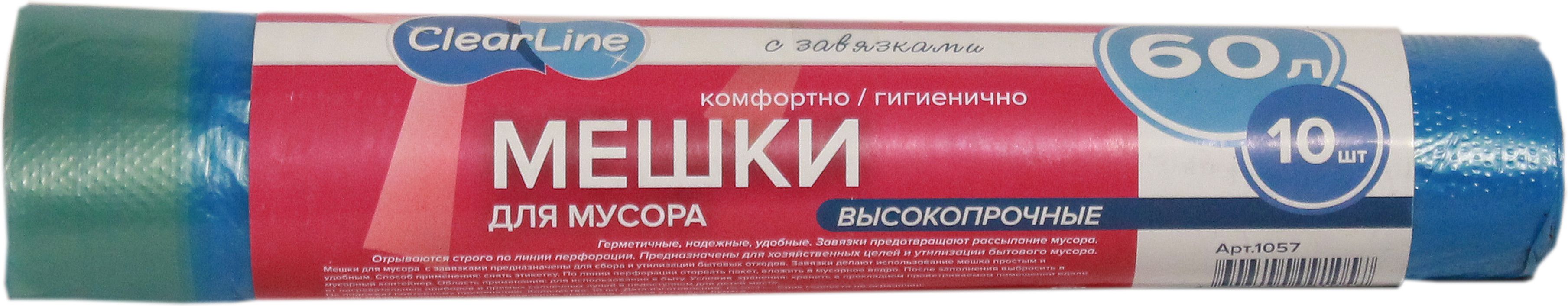 Мусорные мешки 60л/10шт с завязками высокопрочные синие