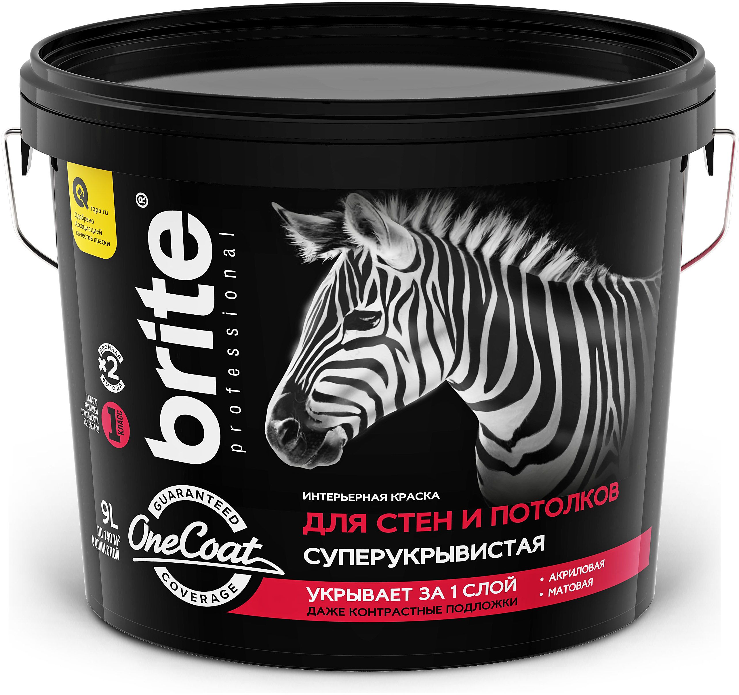 Краска для стен и потолков Brite Professional One Coat база А ведро 9 л