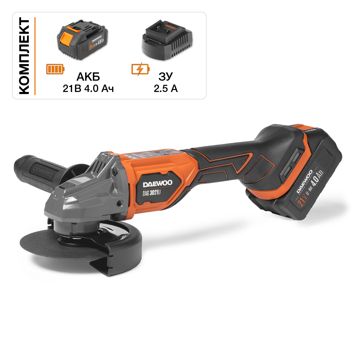 Углошлифовальная машина аккумуляторная Daewoo Dag 3021Li Set 21В 4 Ач 1 Акб и Зу