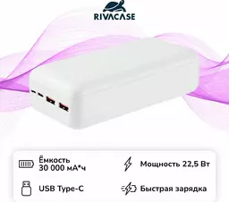 Внешний аккумулятор Rivacase Va2403 30000mah Pd 22.5W White