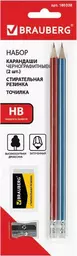 Набор чернографитных карандашей Brauberg Hb, стирательная резинка, 2 шт + точилка (180338)