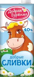 Сливки Добрая Буренка 10% 950г