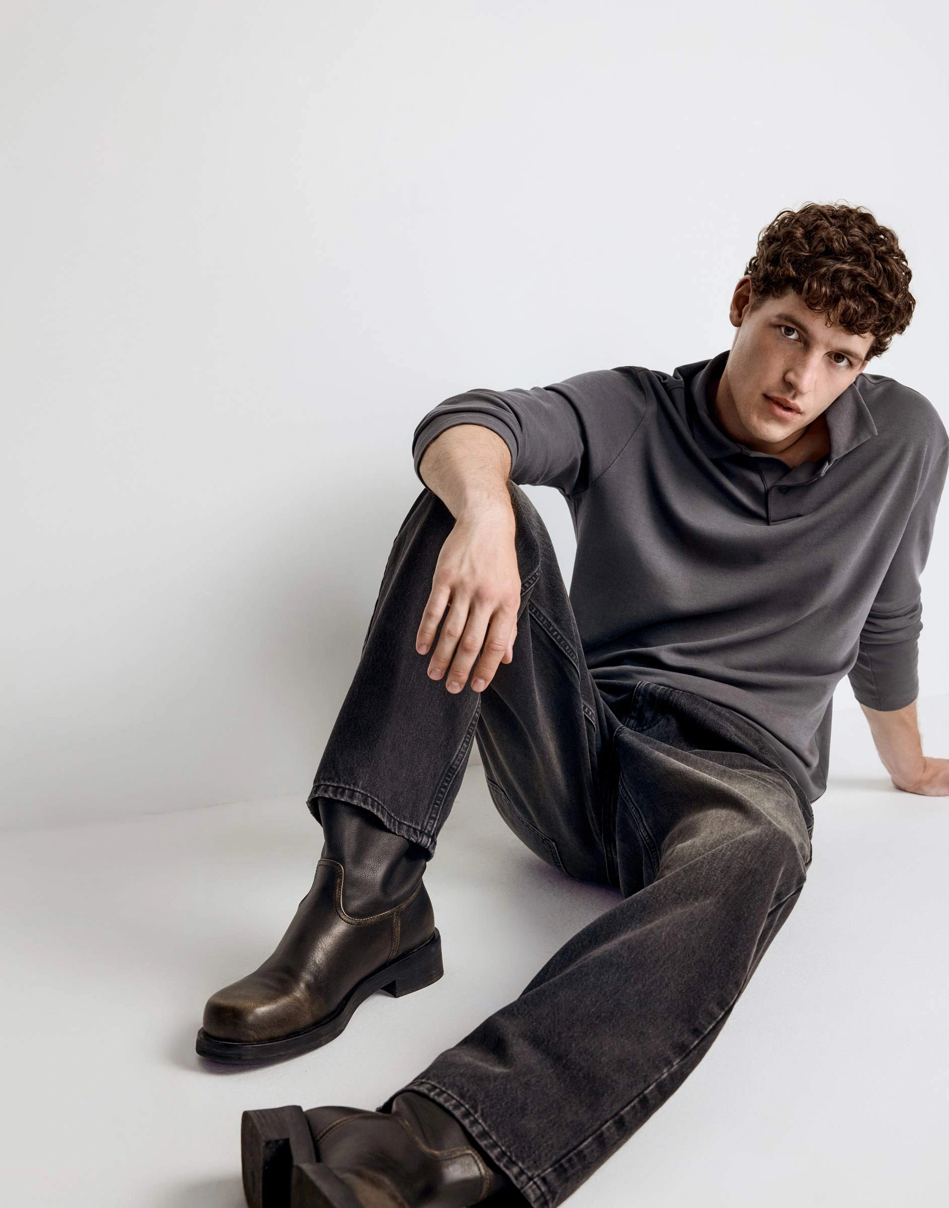 Тёмно-серый лонгслив-поло Bkt017219-2