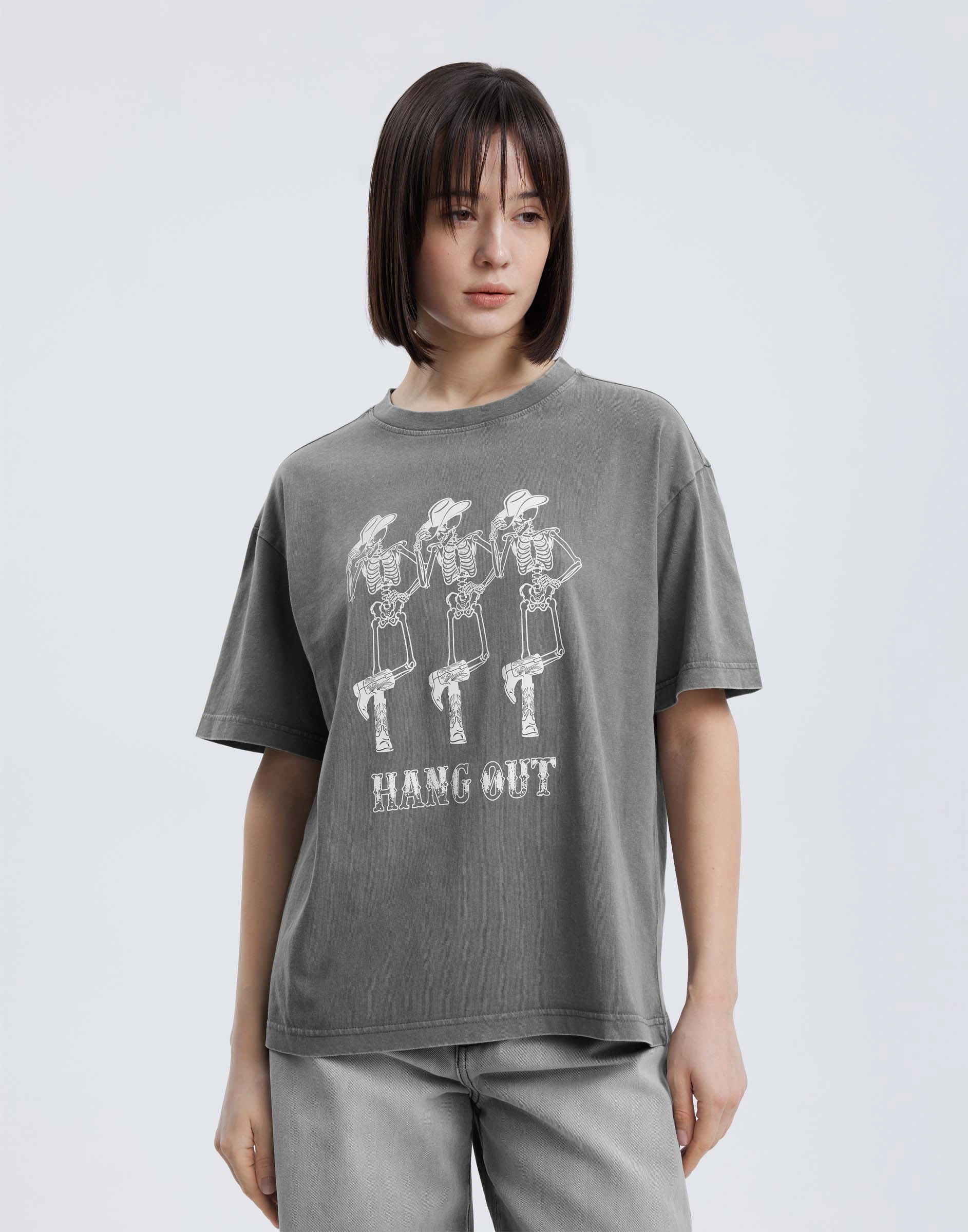 Тёмно-серая футболка oversize с принтом и эффектом варки Gkt026498-1