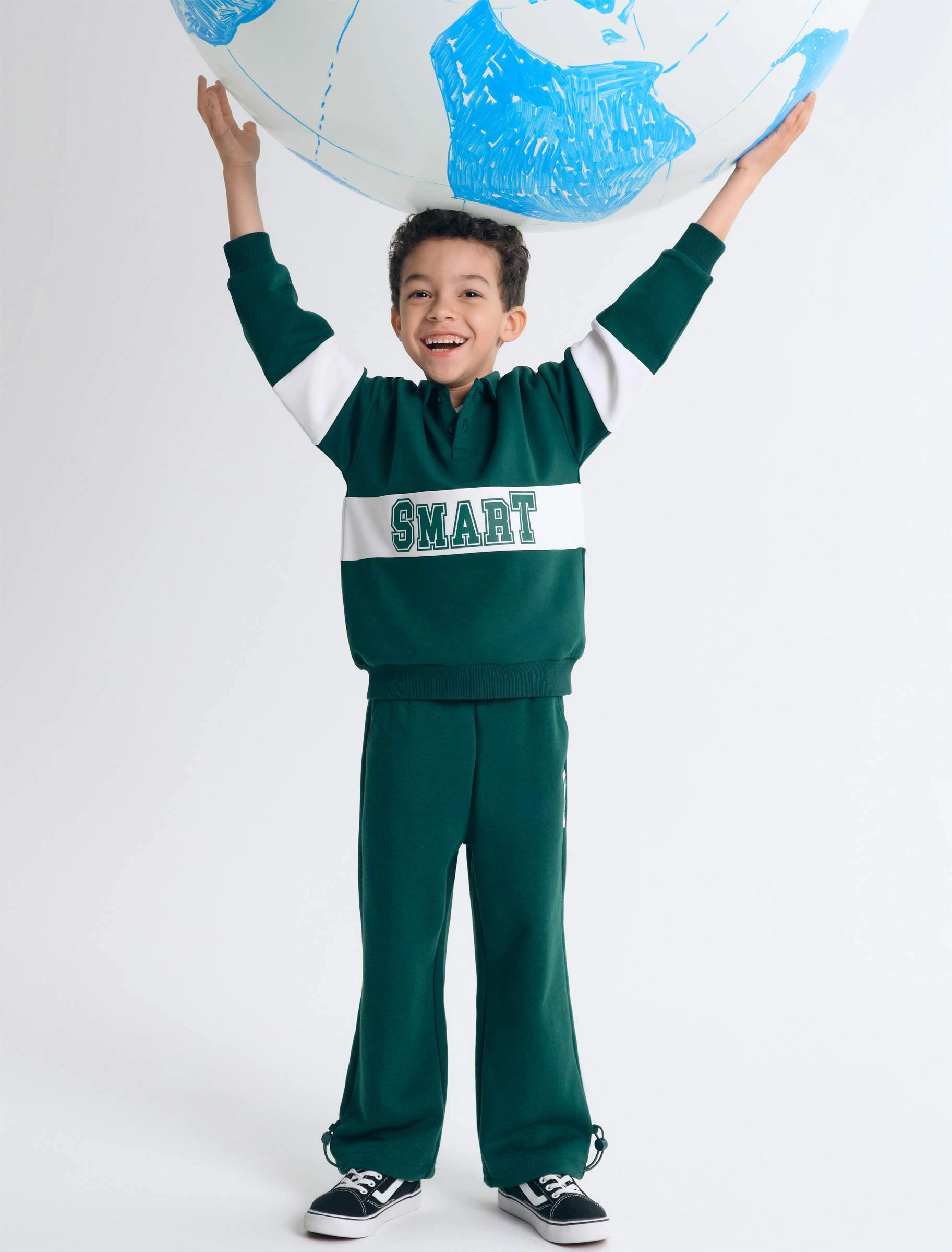 Тёмно-зелёные спортивные брюки-трансформеры oversize для мальчика Bac014249-1