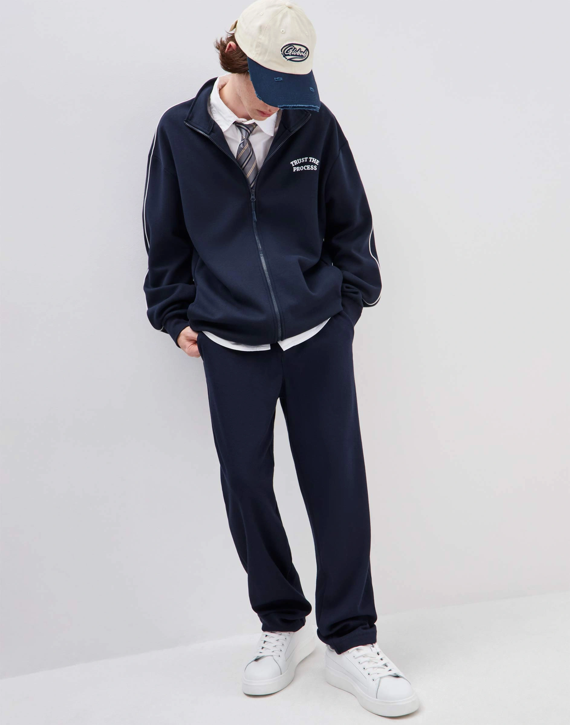 Тёмно-синий свитшот oversize на молнии с воротником Bac014280-2