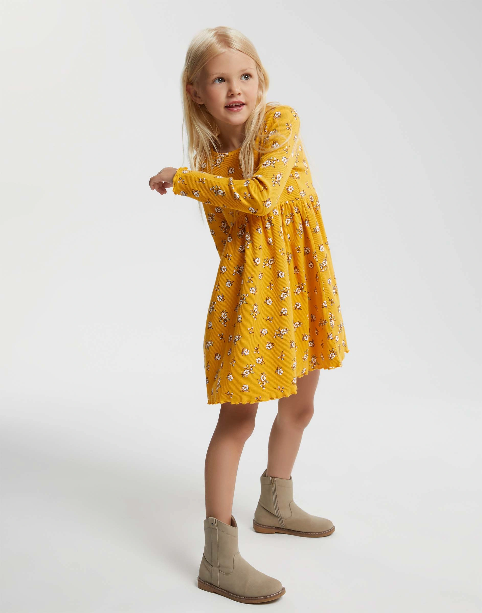 Горчичное платье с принтом для девочки Gdr030338-2