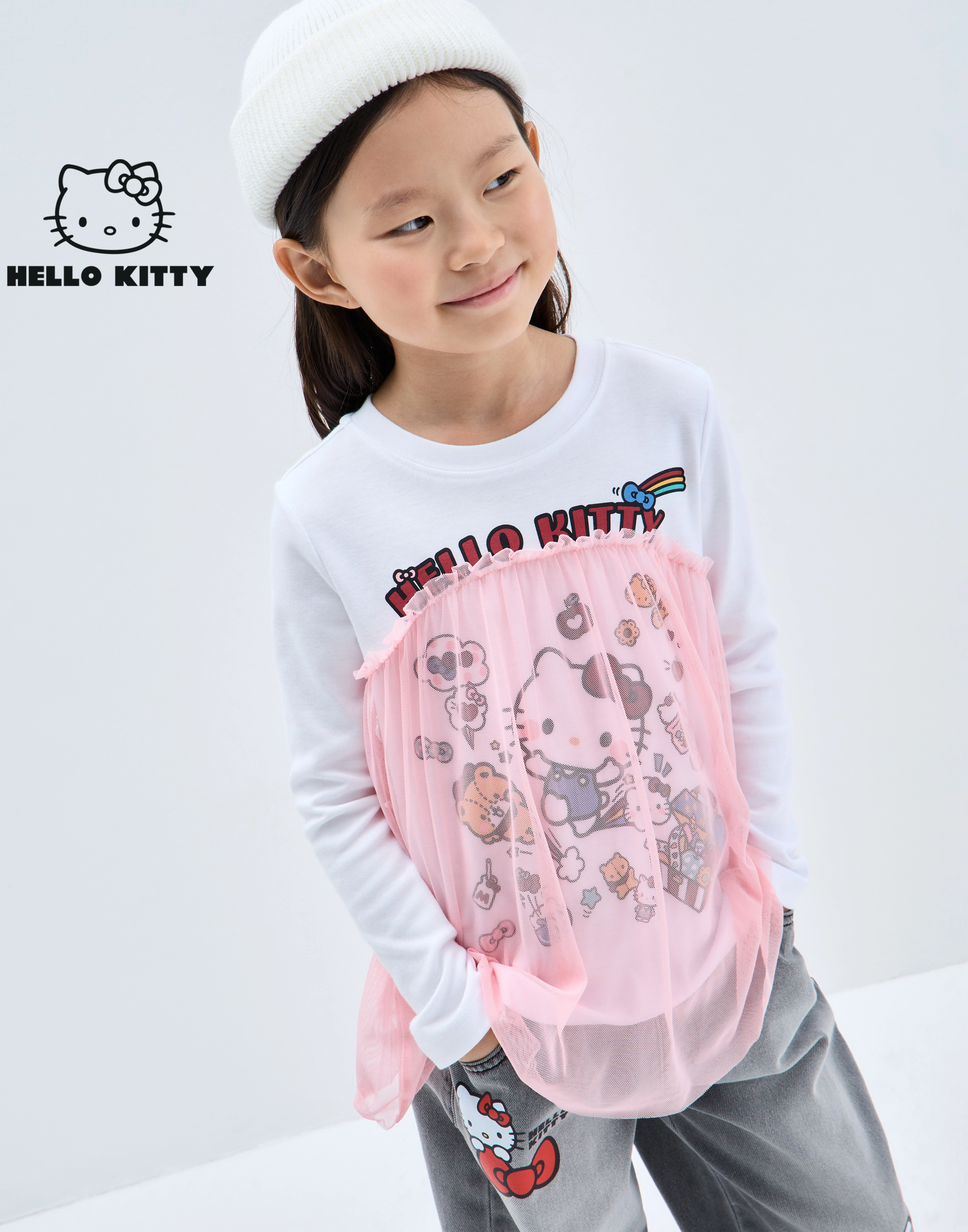 Лонгслив с оборкой и принтом Hello Kitty для девочки Gkt028183-1