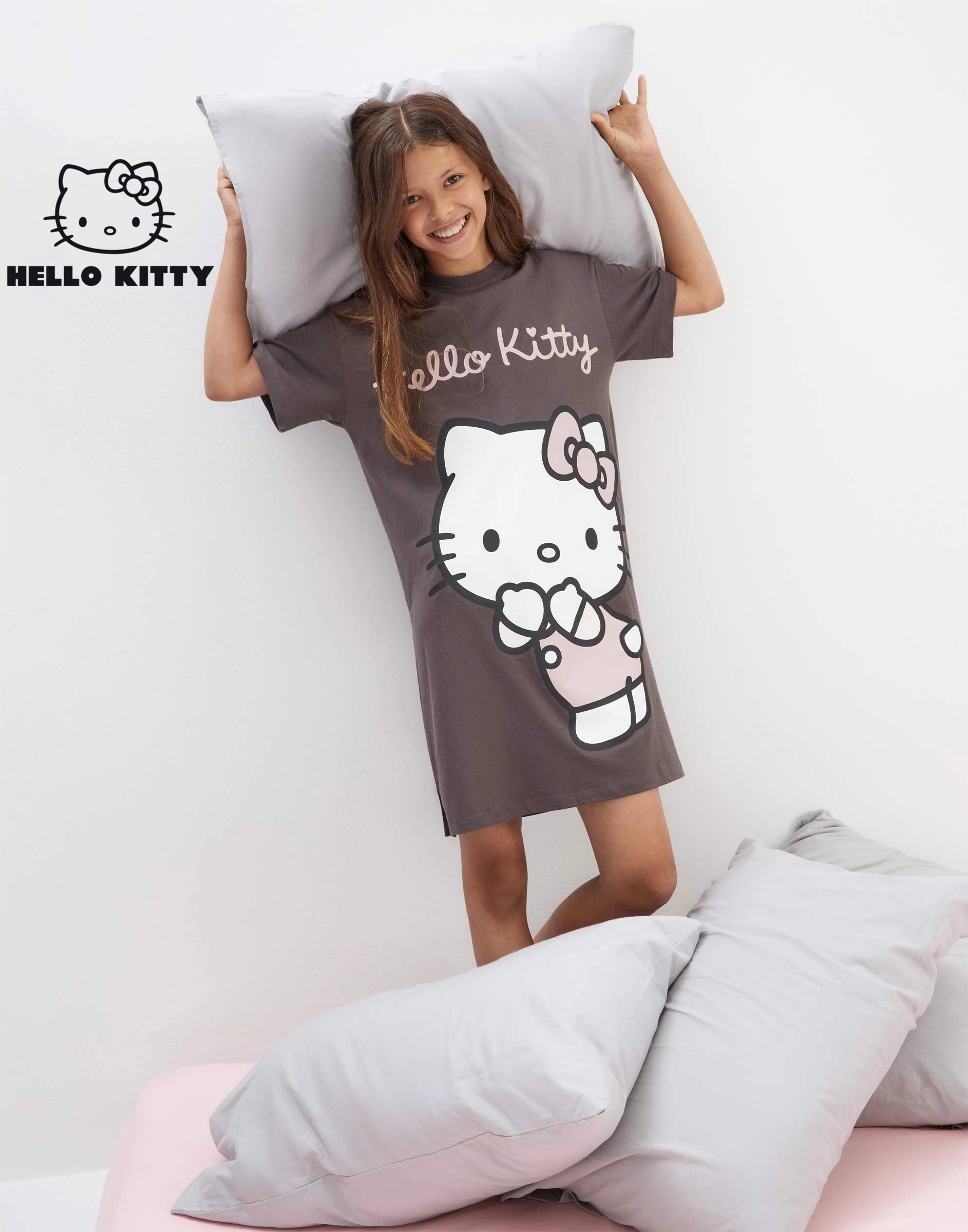 Серая ночная сорочка oversize с принтом Hello Kitty Gsl003065-1