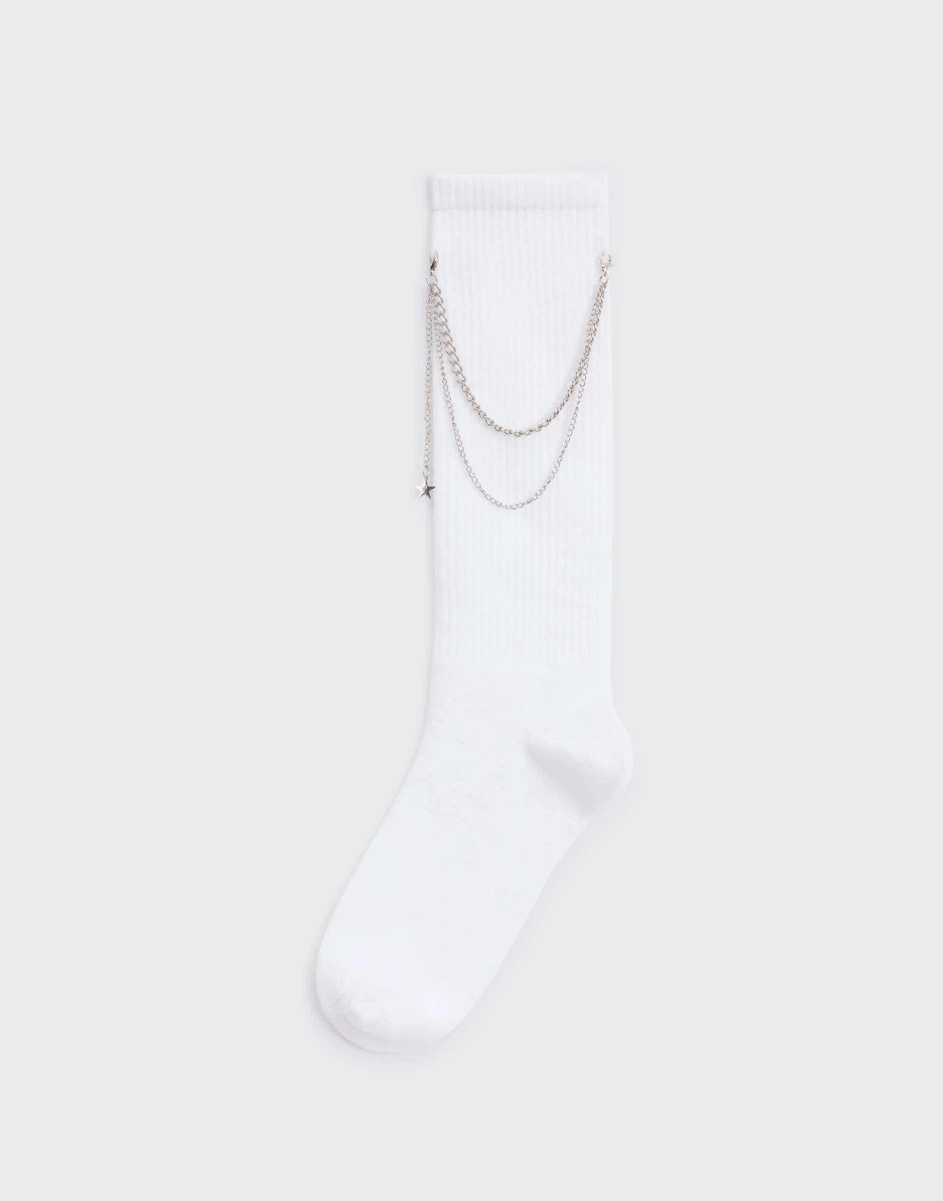 Белые длинные носки с декоративной цепочкой Ghs011061-1