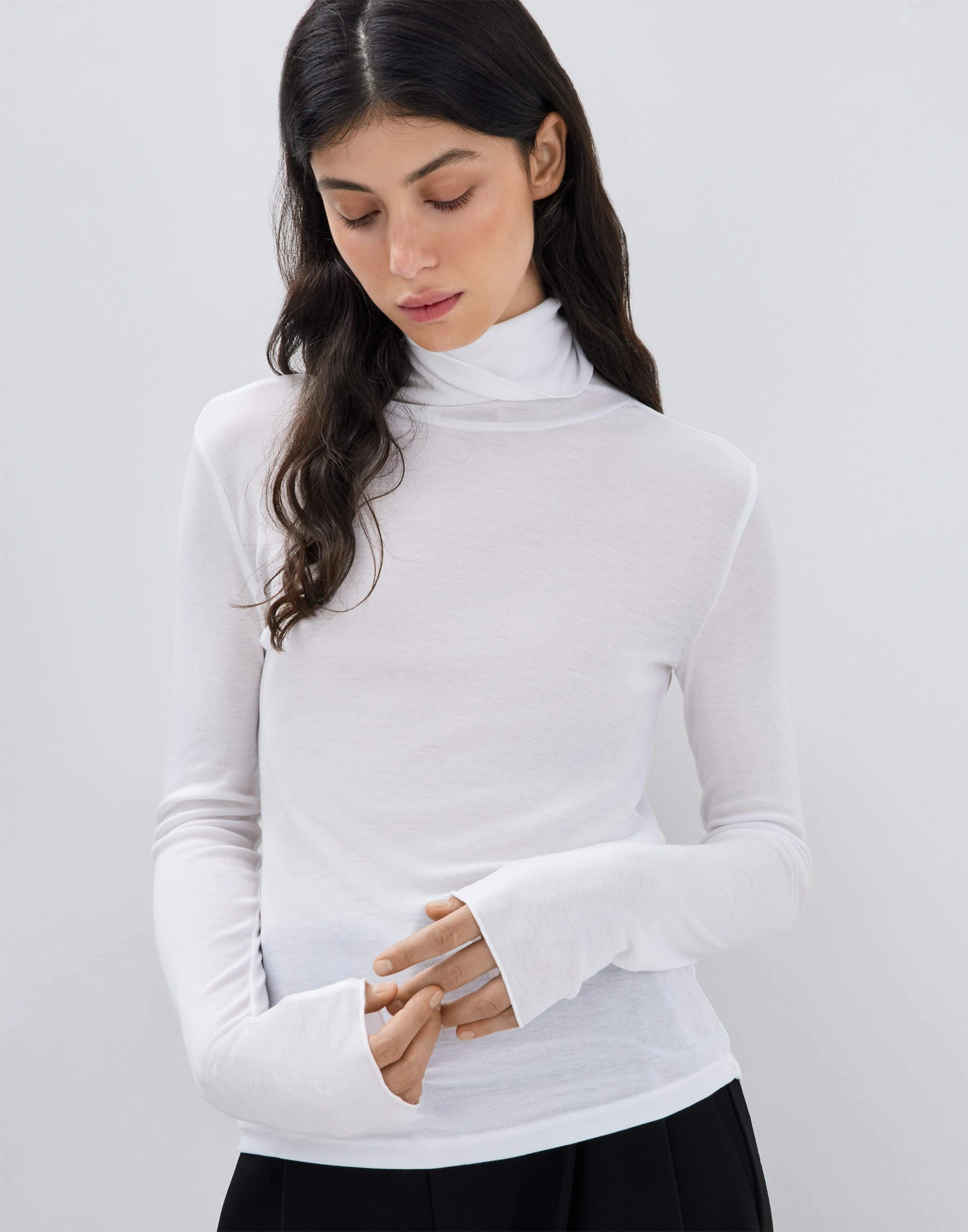 Белый лонгслив в рубчик с воротником-стойкой Gkt027739-3