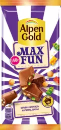 Шоколад молочный Alpen Gold Максфан со взрывной карамелью/мармеладом/печеньем, 140г