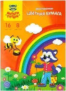 Цветная бумага Мульти-пульти Приключения Енота А4 двусторонняя 16 листов 8 цветов 1 уп