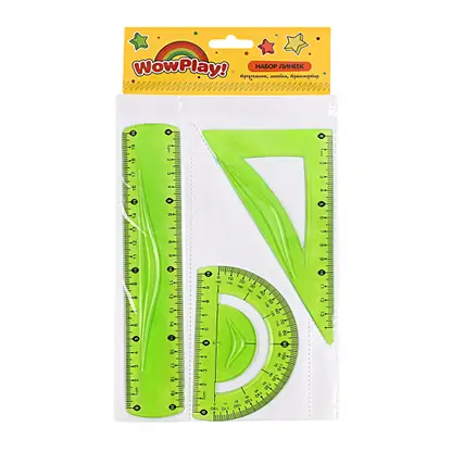 Набор гибкий треугольник 15см линейка 20см транспортир 10см в ассортименте