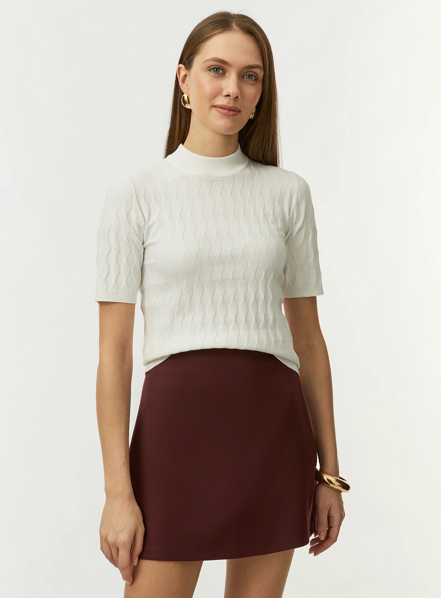 Джемпер ажурной вязки с короткими рукавами