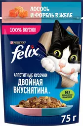 Корм влажный Felix лосось-форель в желе для взрослых кошек 75г