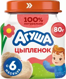 Пюре мясное Агуша Цыпленок 6% с 6 мес. 80г