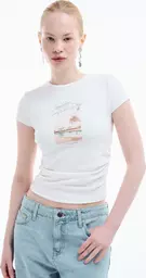 Футболка приталенная с драпировкой и принтом пальм 55353