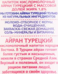Напиток кисломолочный Долголетие Айран Турецкий 1.8%, без змж, 180г