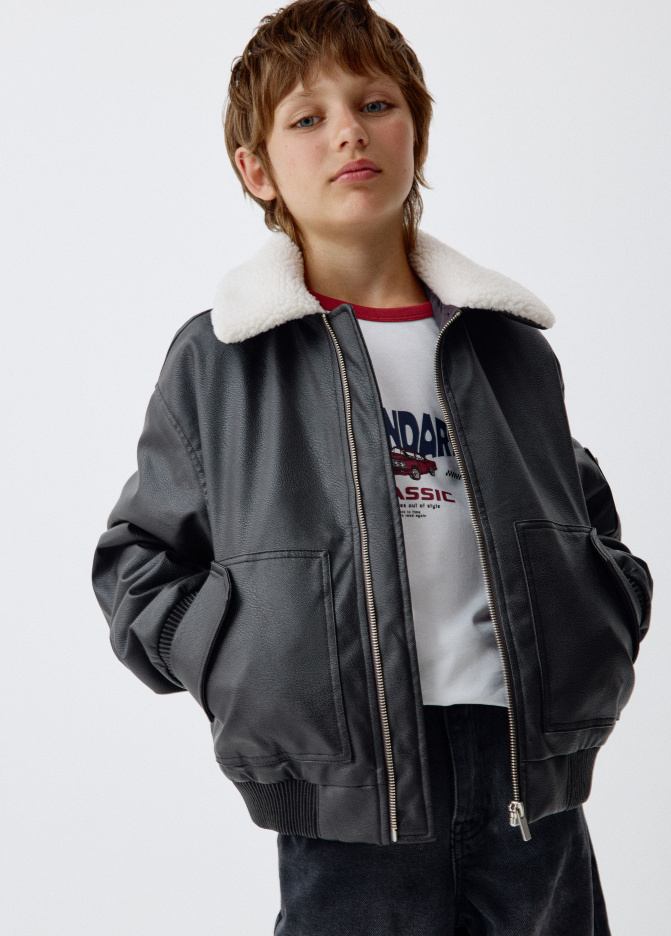 Бомбер из экокожи с меховым воротником для мальчиков Sl5809071114_50
