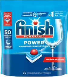Средство Finish Powerball Power Aio для мытья посуды для посудомоечных машин таблетка, 50шт