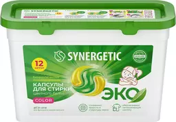 Капсулы для стирки Synergetic Color биоразлагаемые концентрированные гипоаллергенные, 12х15г