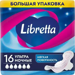 Прокладки Libretta Ультра Ночные с мягкой поверхностью ультратонкие, 16шт
