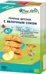 Детское печенье Fleur Alpine Первое с яблочным соком с 6 месяцев, 120г