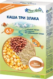 Каша безмолочная детская Fleur Alpine три злака с 6 месяцев, 175г