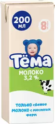 Молоко детское Тёма с 8 месяцев 3.2%, 200мл