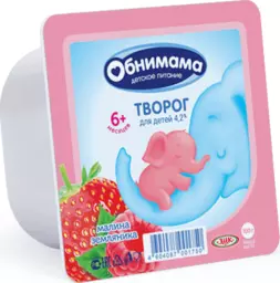 Творог Обнимама малина-земляника с 6 месяцев 4.2%, 100г