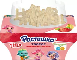 Творог Растишка клубника-банан с печеньем детский 3.5%, 108г