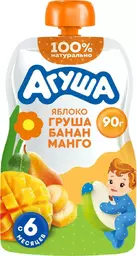 Пюре Агуша яблоко-груша-банан-манго с 6 месяцев, 90г