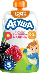 Пюре фруктовое Агуша Яблоко-ежевика-малина с 5 месяцев, 90г