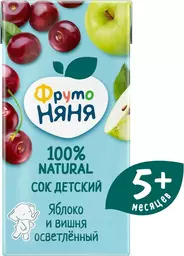 Сок Фрутоняня яблочно-вишнёвый осветлённый, 200мл
