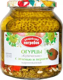 Огурцы Валдайский Погребок Купеческие с зеленью и перцем маринованные, 650г