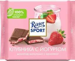 Шоколад молочный Ritter Sport с клубнично-йогуртовой начинкой и кусочками клубники, 100г