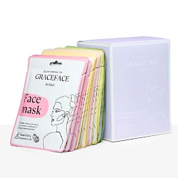 Grace Face Набор тканевых масок для лица с растительными экстрактами 30 шт, увлажняющих