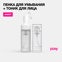 Pusy Набор Пенка для умывания с массажной щеточкой и тоник для лица увлажняющий